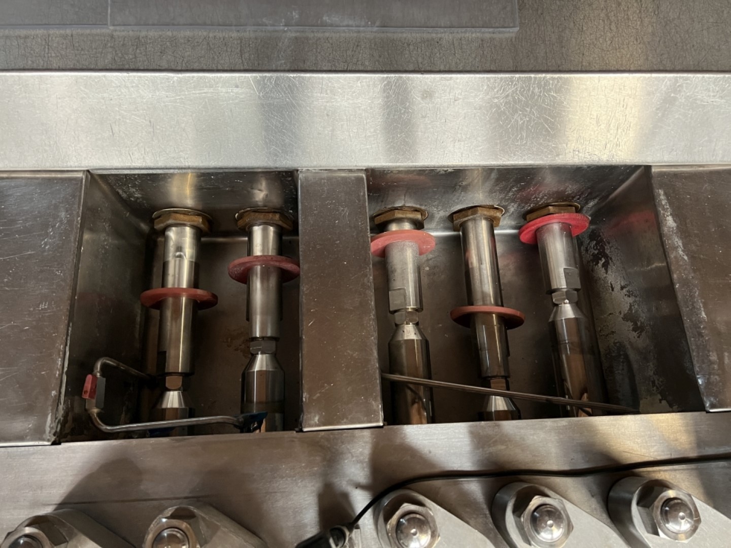 Dieser APV Gaulin MC120 Homogenisator ist eine 5-Zylinder-Maschine, die für 25.000 Liter pro Stunde ausgelegt ist, mit einer maximalen