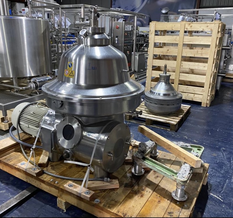 Bei diesem Separator handelt es sich um einen GEA Westfalia MSD 200-01-076 Rahmseparator. Rahmseparatoren trennen die Rohmilch in Rahm und Magermilch. Diese Trennung ist notwendig, um aus der Rohmilch verschiedene Produkte wie Magermilch, Vollmilch, Sahne usw. extrahieren zu können.