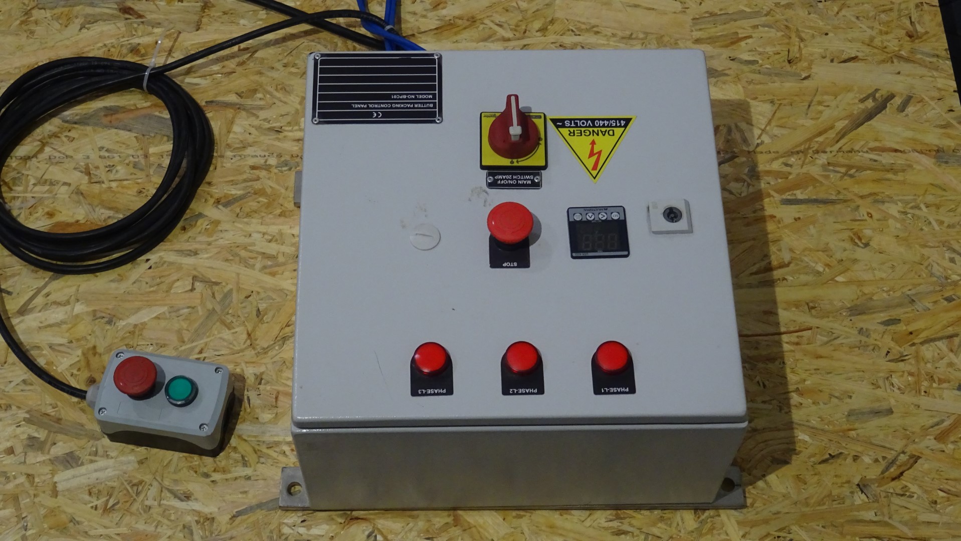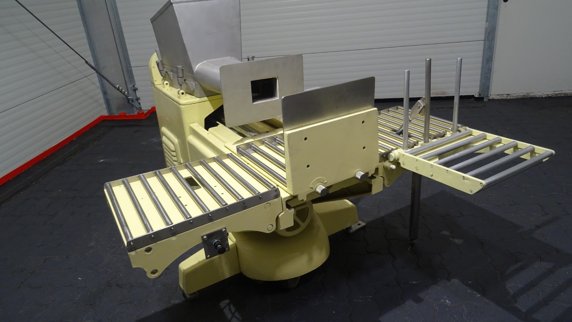 Simon Freres Butter bulk packing without kneading effect or damages to the structure. Automatic filling of butter into carton and cases between 5 to 25 kg. Currently this machine is set for carton boxes of 10 kg butter blocks. Dimensions of the forming head: 120 mm x 90 mm. "Extrusion length" of the block is adjustable on time. Feeding by a big volume feeding hopper with 2 large diameter augers / screws, all made out of stainless steel. Infeed conveyor and manually position the folded carton box in front of the extruder. Manual close the box and move it forward on the non driven outfeed conveyor. Motor: ± 3 kW - 380 V - 50 Hz. New simple control panel with universal timer for adding the dosing time, emergency stop and main switch. Manual available in French language.