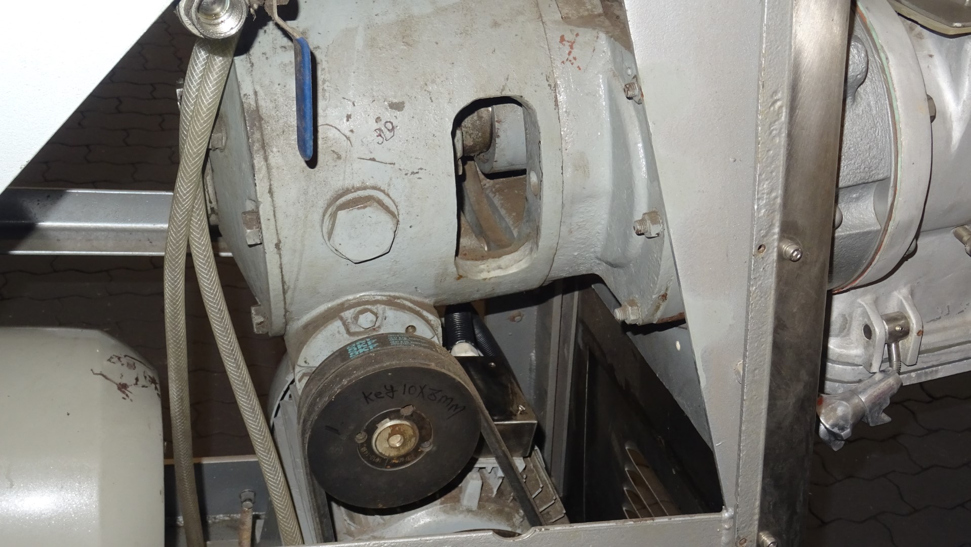 Serviced Continuous Butter Making Machine - CBM with a new control panel with simple controls. Output of 800 kg butter per hour sweet butter and 600 kg butter per hour cultured butter. Input of ± 1.600 liter of cultured or / and sweet cream per hour (35/42% fat, pH of ± 4,8 and infeed temperature ± 8 - 13 °C). Complete electric driven. Churning motor: 15 kW. Screw conveyor (kneading) motor: 5 kW. Butter milk pump: 3 kW. Feed pump: 3 kW. Vacuum pump: 1,5 kW. New control panel with simple controls with cream inlet temperature indictator, wash water inlet temperature indicator, output temperature indicator, emergency stop, main switch and all on/off buttons for the pumps.