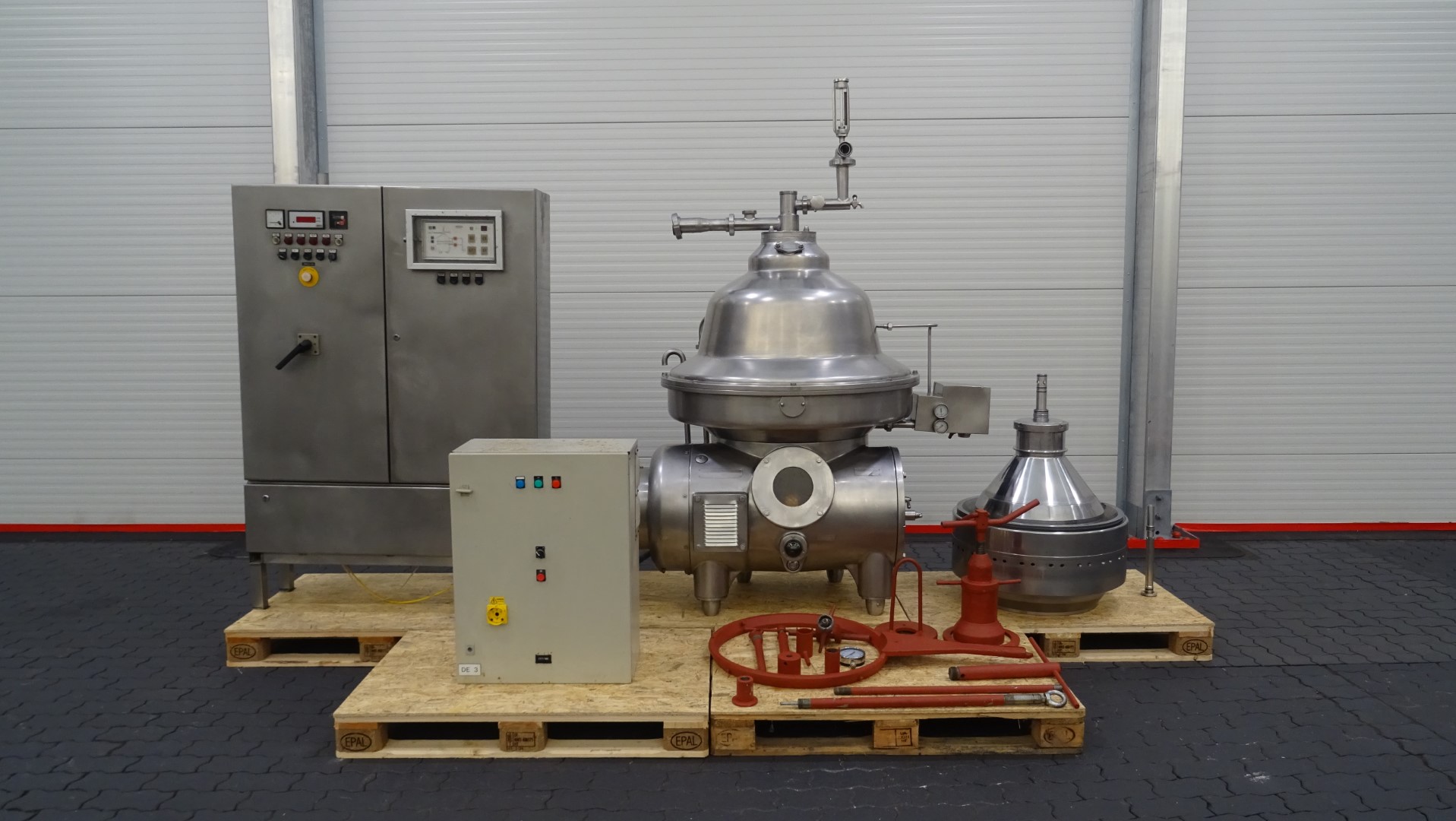 Cream separator (Skimmer). Self cleaning. Machine comes with the bowl, motor (22 kW), motor cover, water valves (original Westfalia), control panel and operation panel (original Westfalia), inlet / outlet pipe with manual pressure valve / flow indicator and several service tools for maintenance.
