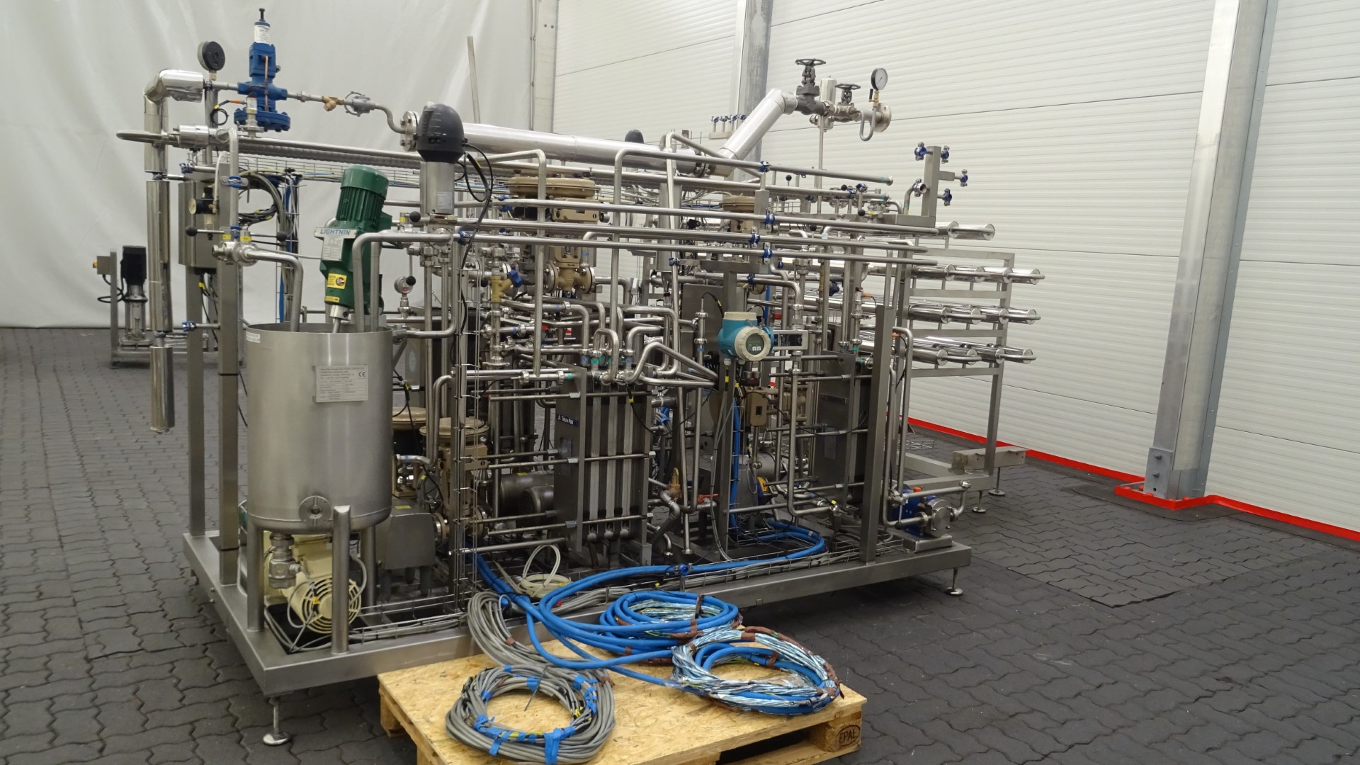 - PHE 2: 225 ltr/h - 2 sections UHT plate heat exchange (80 - 136/145 - 50/80°C), Alfa Laval, Clip 3-RM, 30101-25096, 10 bar, 130°C.