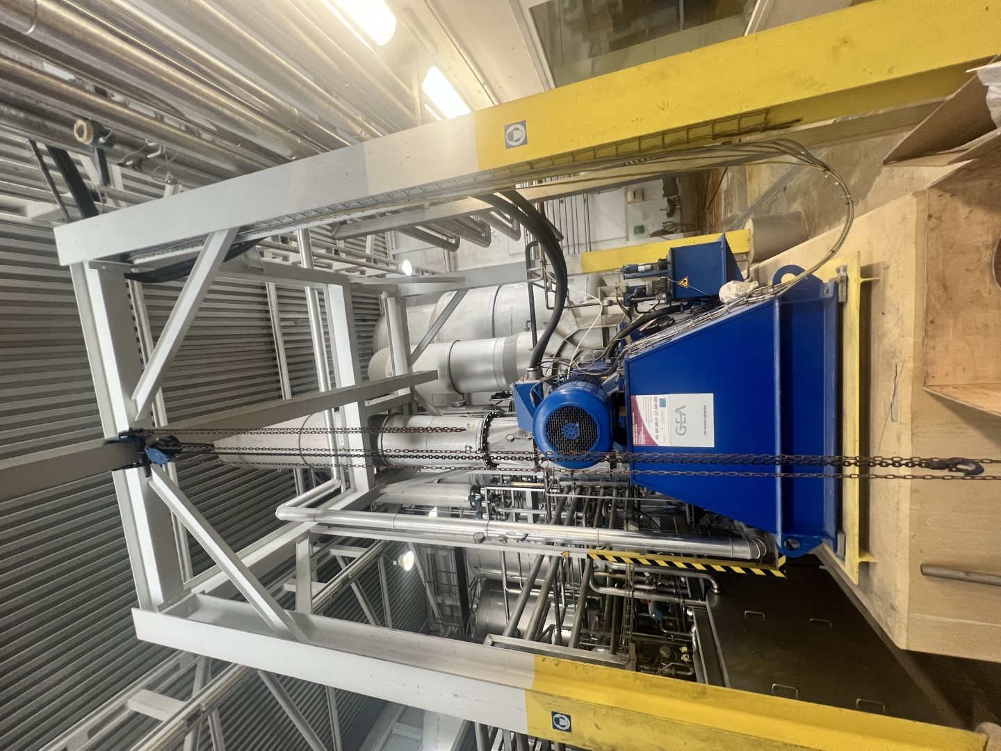 Line is running with an input capacity of ± 15.000 kg of sweet whey per hour, dry matter / TS of 6% and input temperature of 6°C and an output of 2.647 kg of concentrated sweet whey per hour, dry matter / TS of 34% and output temperature of 4 °C.